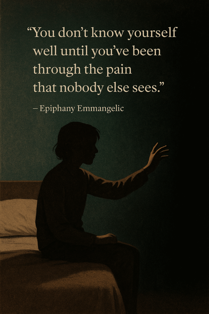 “You don’t know yourself well until you’ve been through the pain that nobody else sees.” Epiphany That truth came to